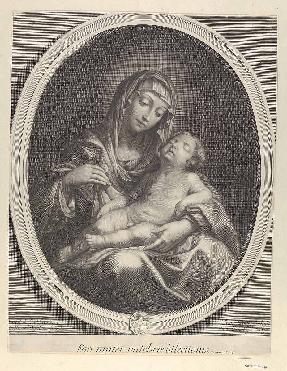 - Title: The Virgin seated with the infant Christ sleeping in her lap, in an oval frame, after Reni