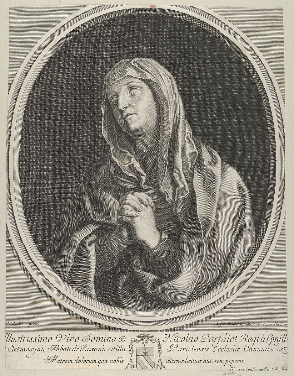 After a painting by Reni. Verso is not visible as print is laid to another sheet of paper.