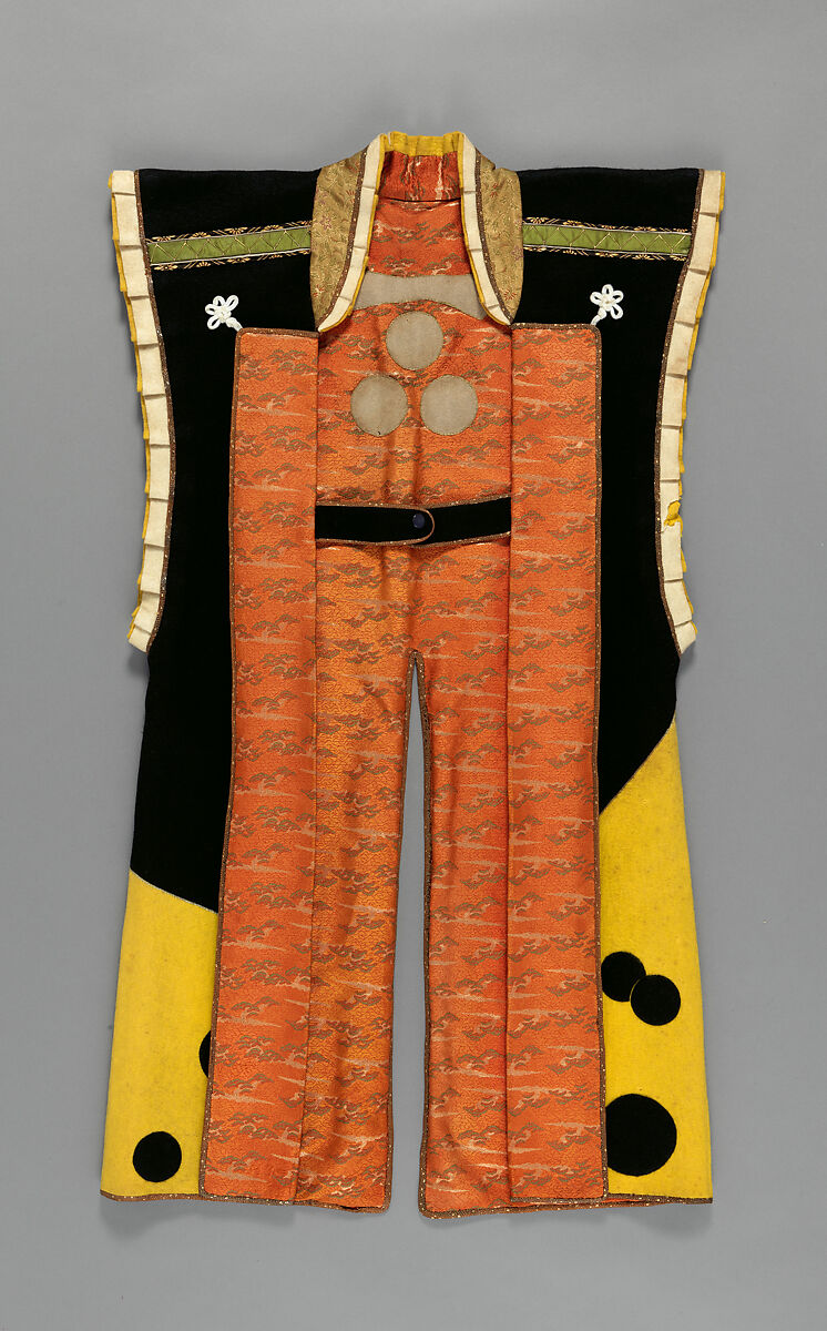 This surcoat features a sacred volcano motif, possibly representing Mount Fuji. It is also decorated with the crest (mon) of the Mori family, one of the most powerful daimyo clans of the nineteenth century. Using imported European wool, called rasha in Japan, it was skillfully made as a detailed copy of a famous seventeenth-century surcoat, which is now in the collection of the Osaka Castle Museum.