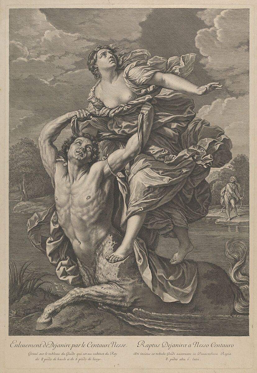 - Title: Dejanira being abducted by the centaur Nessos, a man with bow and arrow at right, after Reni
