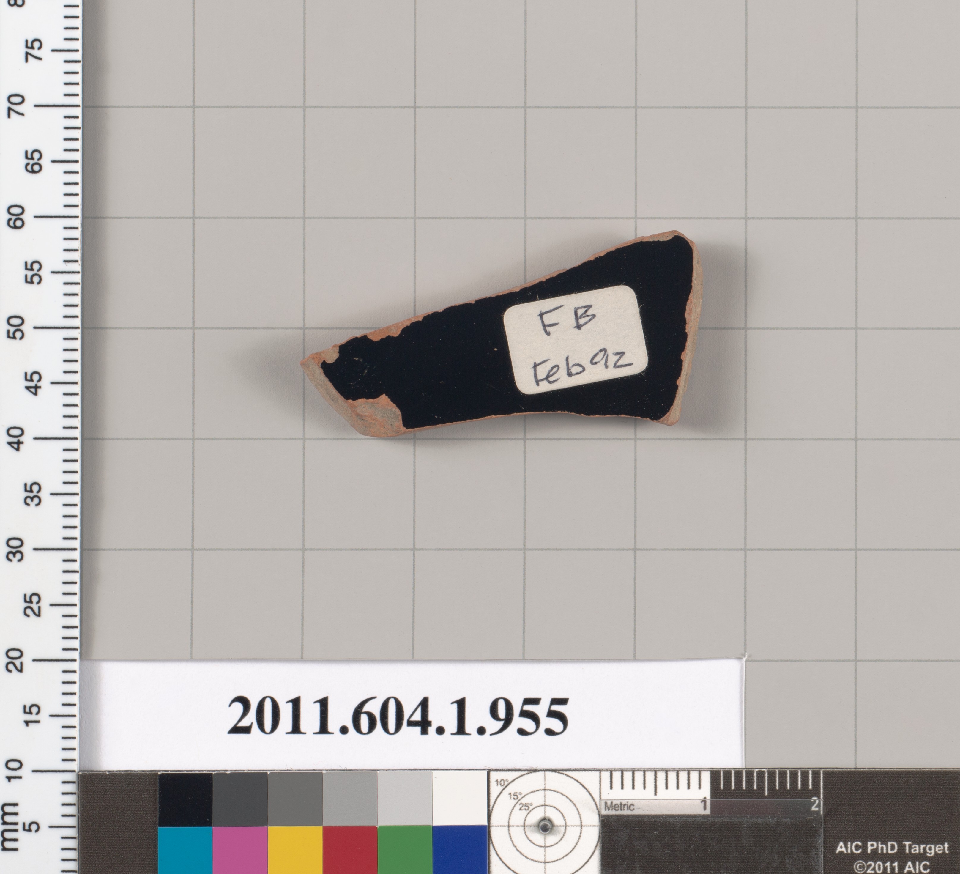 Exterior, head of bearded man with an ivy wreath to right and part of a thrysos with fingers