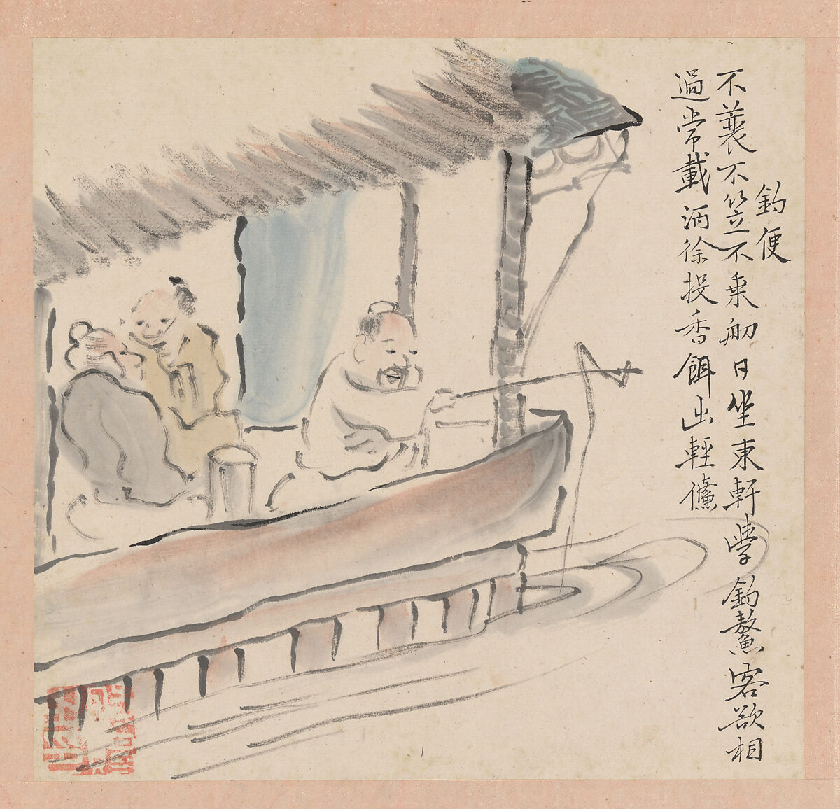 Considered today one of Japan’s national treasures, the album Ten Conveniences and Ten Pleasures (1771) was a collaboration between the renowned painters Ike no Taiga (1723–1776) and Yosa Buson (1716–1784). It visualized an idyllic lifestyle set in a reclusive garden, as described by Li Yu (1611–1680), a Chinese novelist who also published a famous painting manual. This sophisticated copy of the album was made by Totoki Baigai, a scholar-painter and onetime student of Taiga.