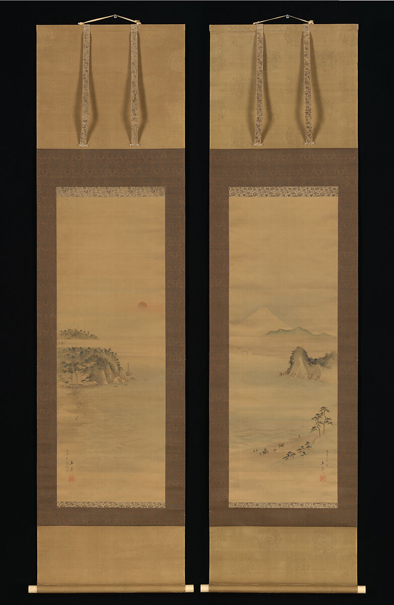 - Medium:Diptych of hanging scrolls; ink and color on silk