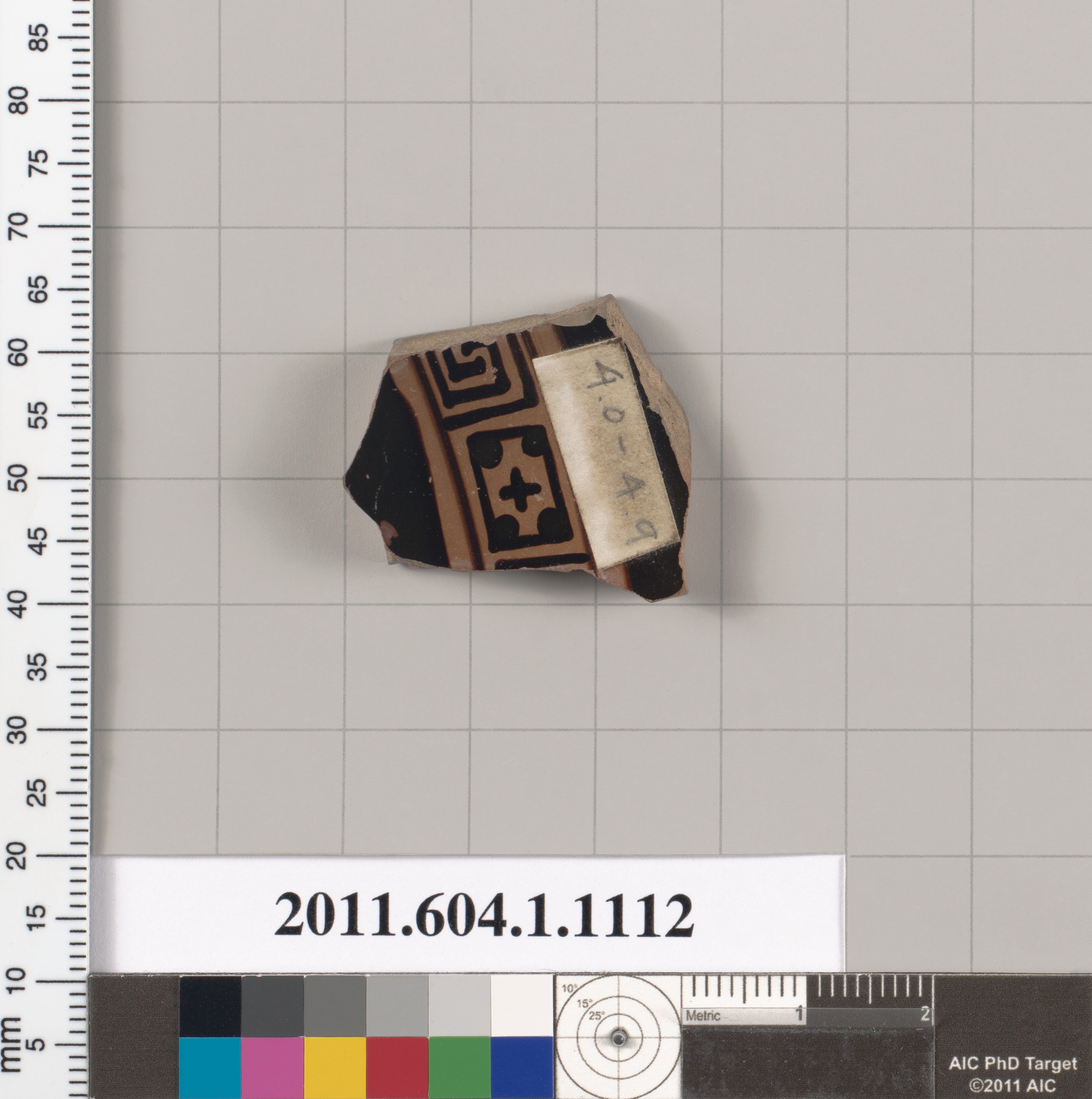 Interior, meander and cross squares; Exterior, bit of drapery and part of legs of male to right