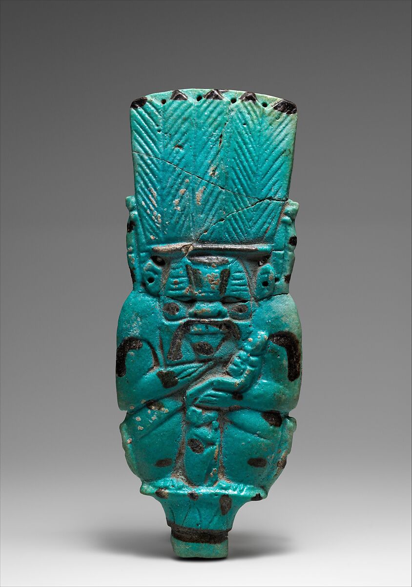 The Bes-image is part of a repertoire of figures created in a distinctive spotted faience from dynasty 22 into dynasty 26. The center of production was the eastern Delta, in particular Bubastis and Tanis; this was an area where Near Eastern peoples had long been interwoven in the population; at this time it was also a center for the settlement of Libyan tribal peoples. Possibly these conditions influenced this particular production.