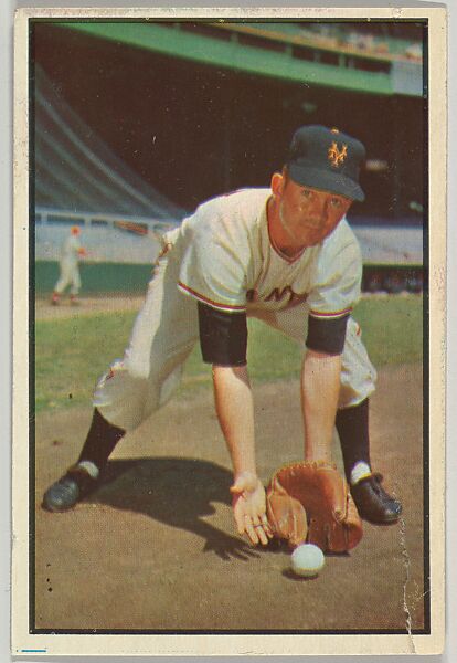 Number 1 in series. Baseball trade card from the "Colors" set, series 7 (R406-7), issued in 1953 by Bowman Gum.
