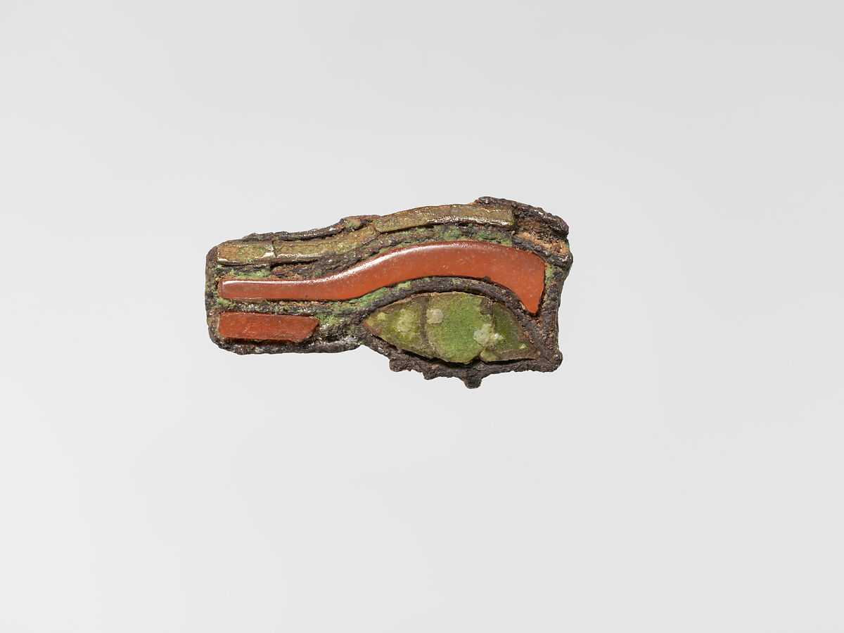 This fragment illustrates a portion of an inlaid wadjet-eye from a pectoral.