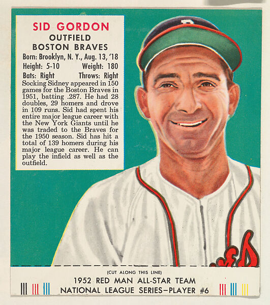 - Title: Sid Gordon, from the Red Man All-Star Team series (T232), issued by Red Man Chewing Tobacco