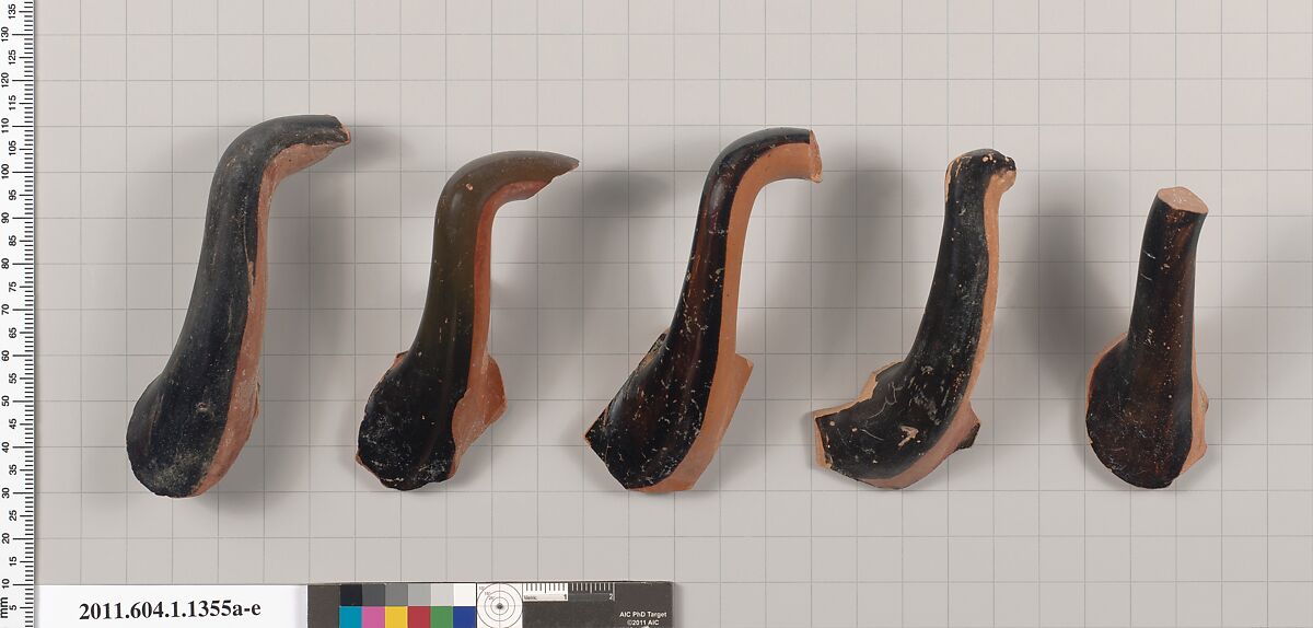 - Title:Terracotta fragments of kylikes (drinking cups)