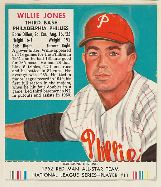 - Title: Willie Jones, from the Red Man All-Star Team series (T232), issued by Red Man Chewing Tobacco