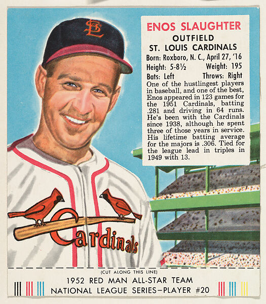 - Title:Enos Slaughter, from the Red Man All-Star Team series (T232), issued by Red Man Chewing Tobacco