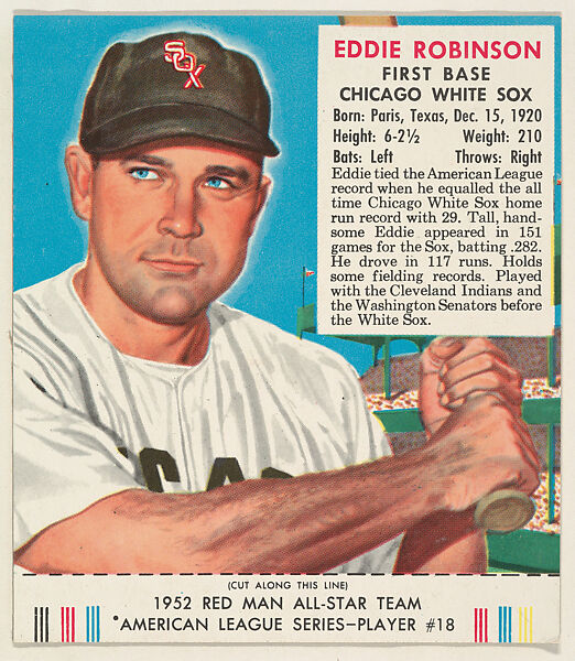 - Title:Eddie Robinson, from the Red Man All-Star Team series (T232), issued by Red Man Chewing Tobacco