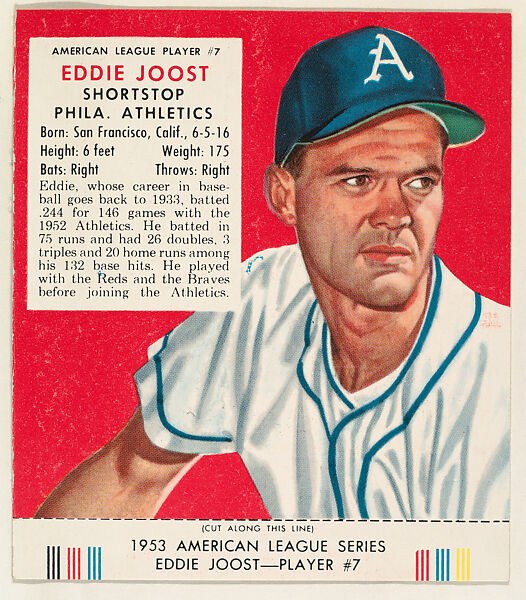 - Title: Eddie Joost, from the Red Man All-Star Team series (T233), issued by Red Man Chewing Tobacco