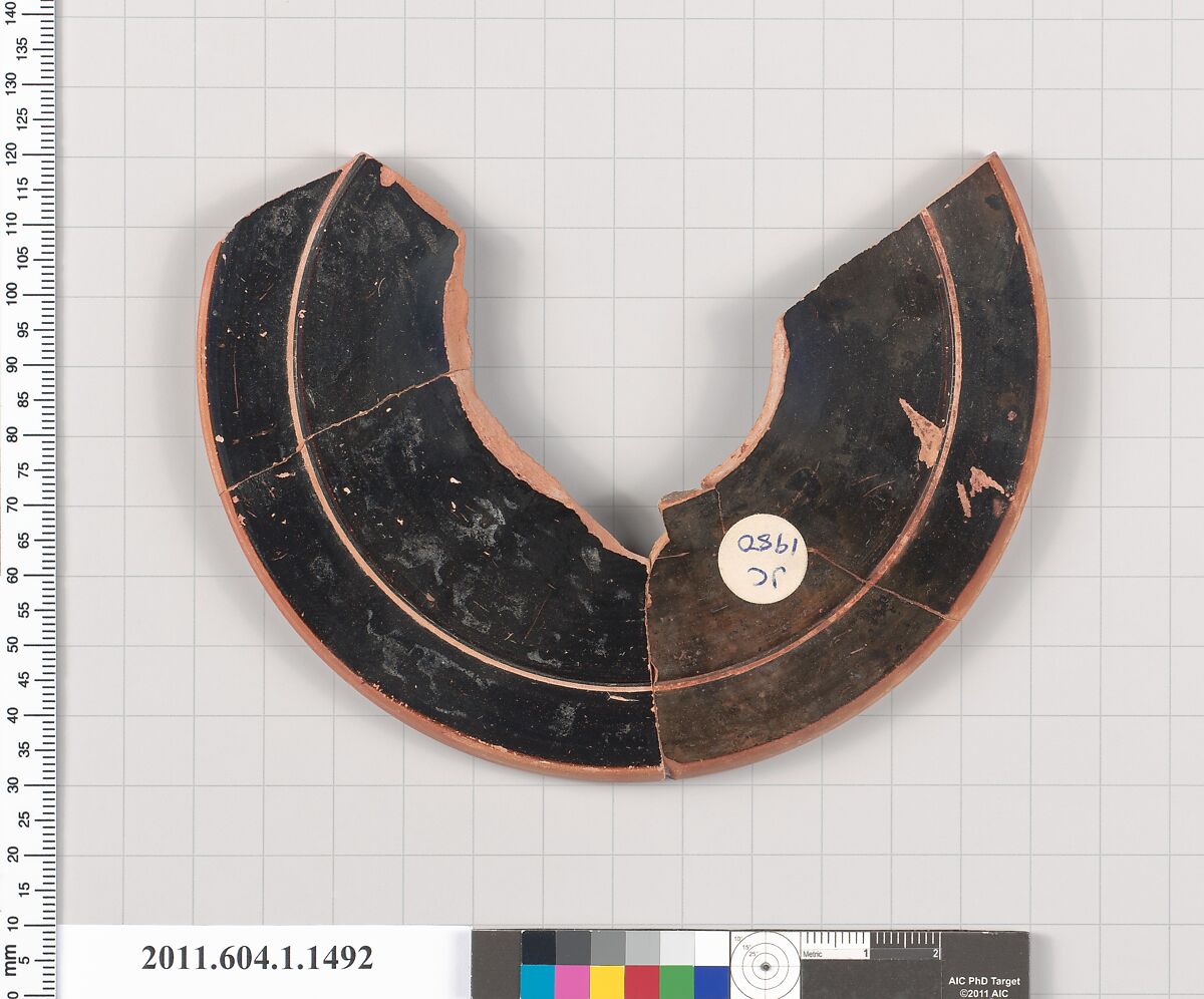 - Title:Terracotta fragment of a kylix (drinking cup)