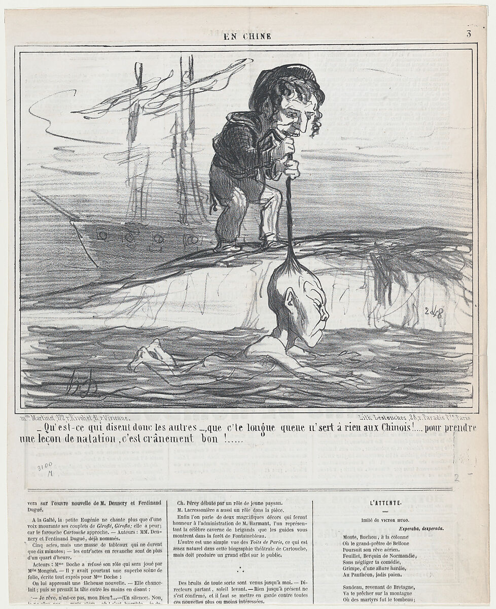 - Title: Qu-est-ce qui disent donc les autres..., from En Chine, published in Le Charivari, December 20, 1858