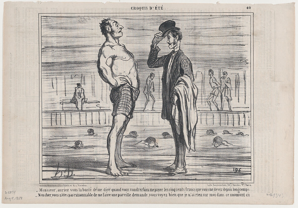 - Title: Monsieur, auriez vous la bonté de me dire..., from Croquis d'Été, published in Le Charivari, August 5, 1858