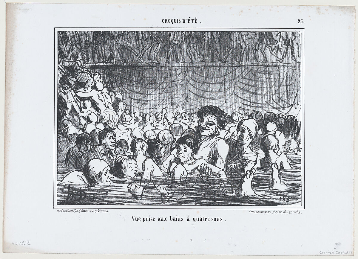 - Title: Vue prise aux bains à quatre sous, from Croquis d'Été, published in Le Charivari, June 18, 1858