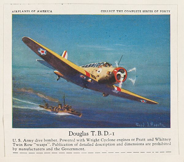 - Title: Douglas T. B. D.- I, collector card from the Airplanes of America series (D2), issued by the Kelley Baking Company to promote Kelley's Bread