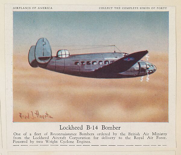 - Title: Lockheed B-14 Bomber, collector card from the Airplanes of America series (D2), issued by the Kelley Baking Company to promote Kelley's Bread