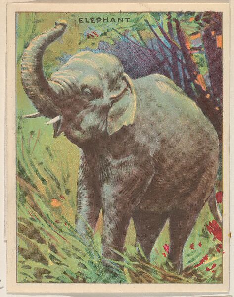Elephant, collector card from the Animals series (D9), issued by the Weber Baking Company to promote Onist Milk and Pullman Bread; 80 cards in series. These cards were also published as the Animals series (T29) by Hassan Cigarettes. (Album 307, page 21)