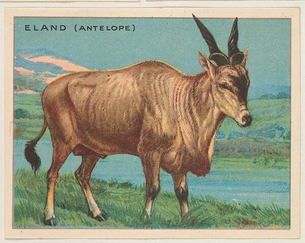Eland (Antelope), collector card from the Animals series (D9), issued by the Weber Baking Company to promote Onist Milk and Pullman Bread; 80 cards in series. These cards were also published as the Animals series (T29) by Hassan Cigarettes. (Album 307, page 21)