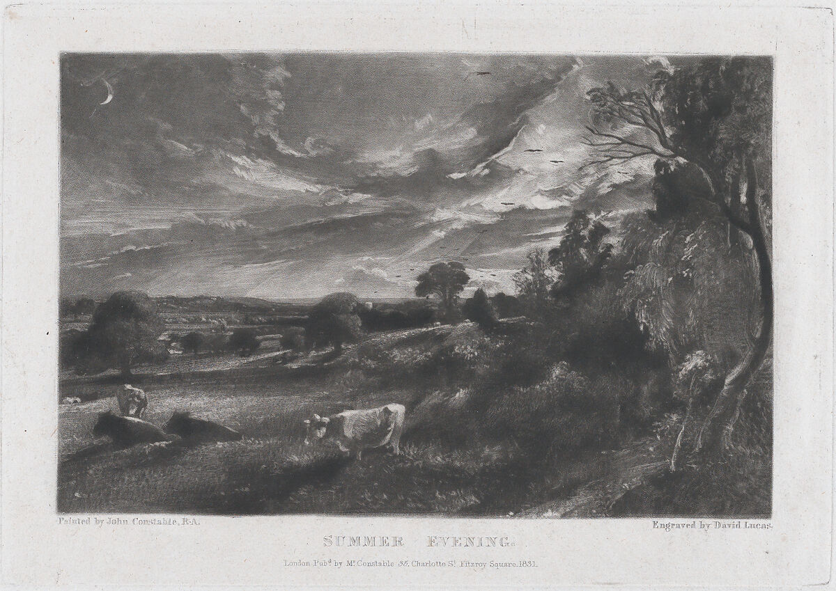 In 1827, Constable began work on the project that would occupy his attention until his death seven years later: the publication of a series of prints based on his paintings that would stand as a summary of his achievements. The painter collaborated closely with the engraver David Lucas to create prints that would illustrate Constable's didactic intention—to illustrate the "chiaroscuro of nature." The medium of mezzotint, in which the design is developed from dark to light using a wide range of velvety tones, was eminently suited to the project.