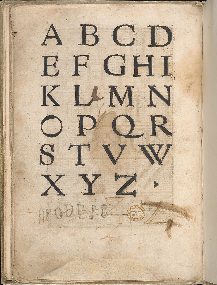 Italian translation of title page, illustrated title page, portrait of Charles V, 46 pages of designs including pages of the alphabet.