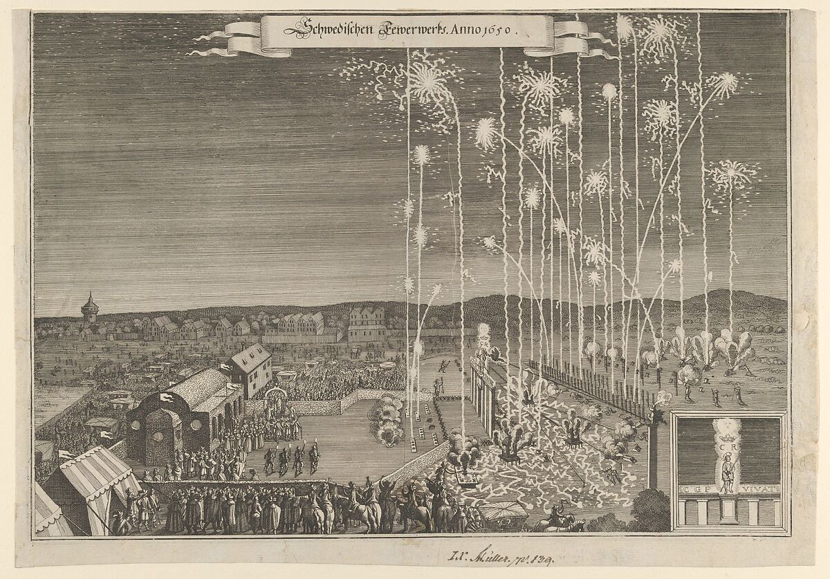 - Title: Fireworks given by the Swedish ambassadors to honor Karl Gustav, Count Palatine, executed by Johann Carl, Nuremberg 1650