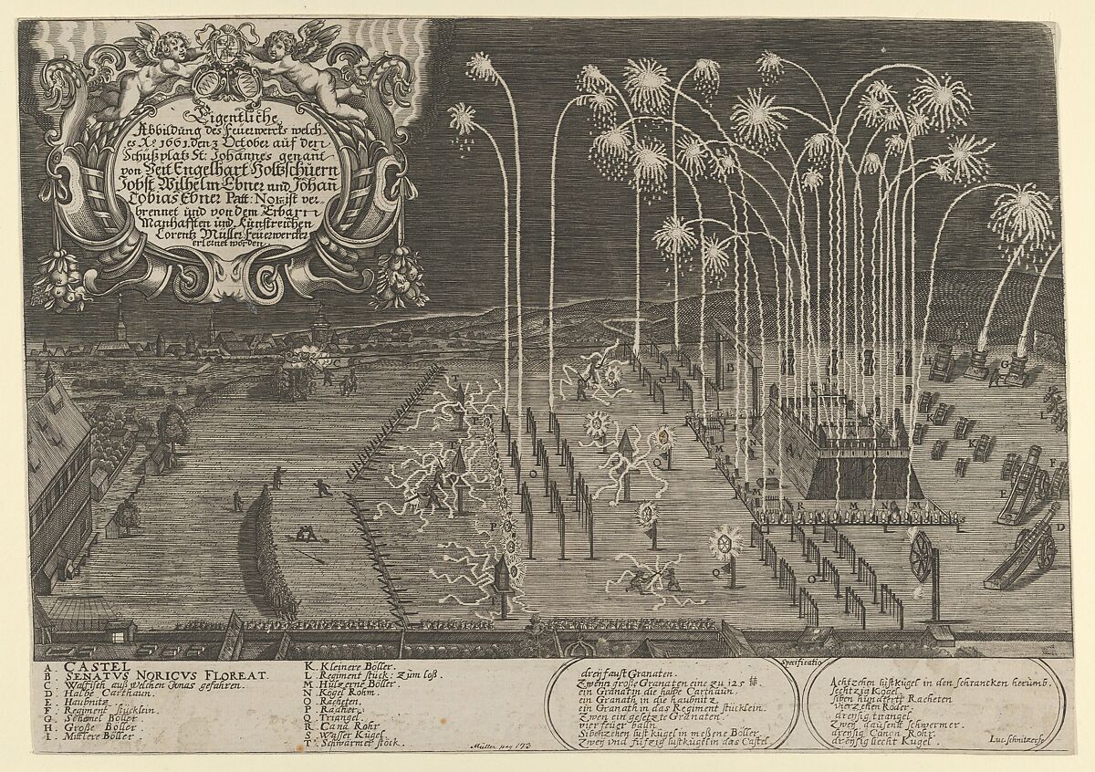 - Title: Fireworks display by Engelhart Holtzschuer, Jobst Wilhelm Ebner and Johann Tobias Ebner as proof of mastership, Nuremberg, 1661
