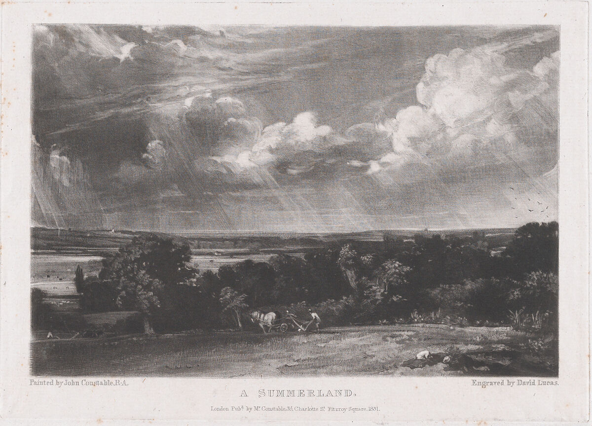 In 1827, Constable began work on the project that would occupy his attention until his death seven years later: the publication of a series of prints based on his paintings that would stand as a summary of his achievements. The painter collaborated closely with the engraver David Lucas to create prints that would illustrate Constable's didactic intention—to illustrate the "chiaroscuro of nature." The medium of mezzotint, in which the design is developed from dark to light using a wide range of velvety tones, was eminently suited to the project.