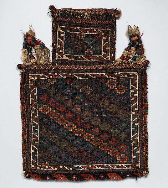 - Medium: Wool; sumak brocaded (front), tapestry weave (back), pile weave (bottom), asymmetrically knotted pile