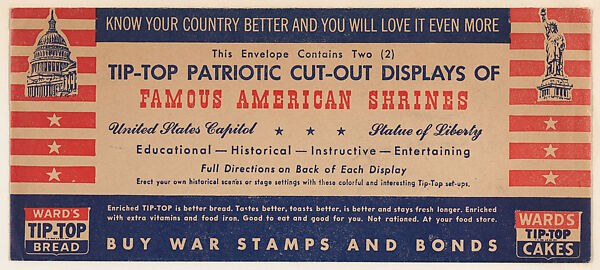 United States Capitol, Statue of Liberty, bakery insert card envelope from the Famous American Shrines series (D29), issued by the Ward Baking Company and distributed in their Tip-Top Bread. (Album 307, page 44)