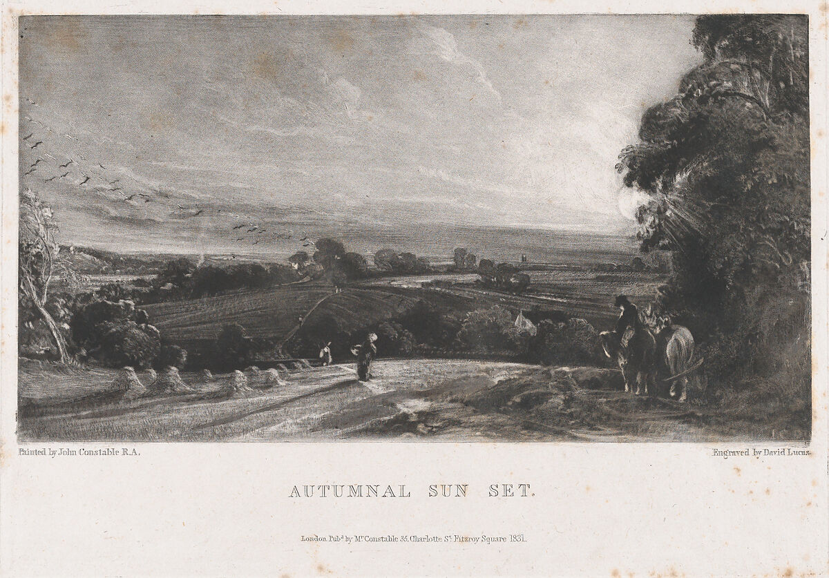 In 1827, Constable began work on the project that would occupy his attention until his death seven years later: the publication of a series of prints based on his paintings that would stand as a summary of his achievements. The painter collaborated closely with the engraver David Lucas to create prints that would illustrate Constable's didactic intention—to illustrate the "chiaroscuro of nature." The medium of mezzotint, in which the design is developed from dark to light using a wide range of velvety tones, was eminently suited to the project.