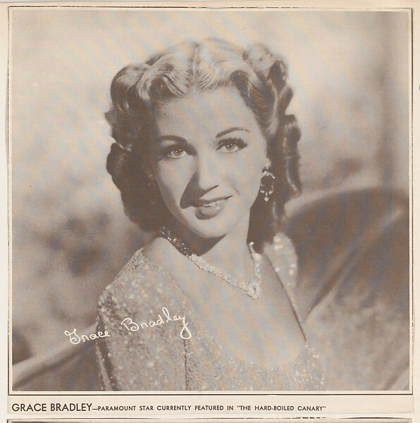 Grace Bradley, bakery card from the Film Celebrities series (D31), issued by the Ward Baking Company, cut from from Ward's Weekly pamphlet. (Album 307, page 51)