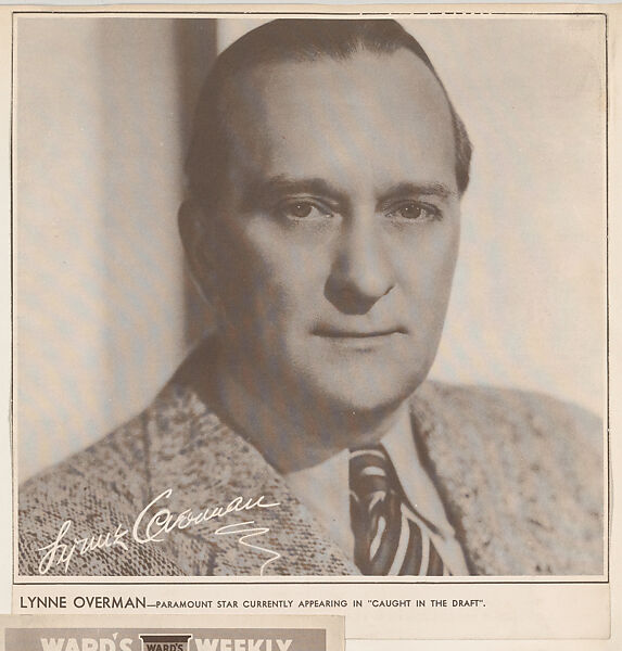 - Title: Lynne Overman, bakery card from the Film Celebrities series (D31), issued by the Ward Baking Company