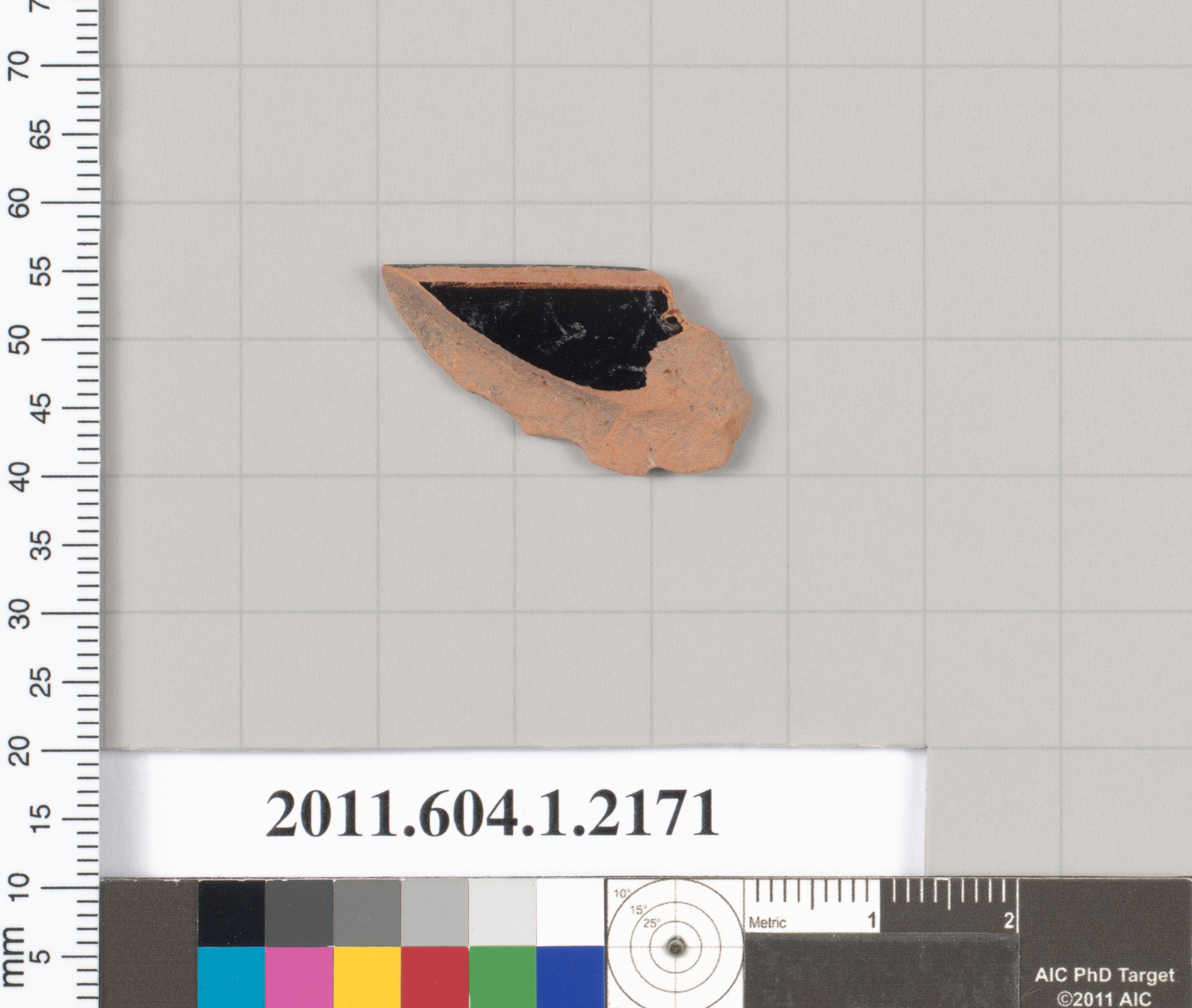 Title: Terracotta rim fragment of a kylix (drinking cup)