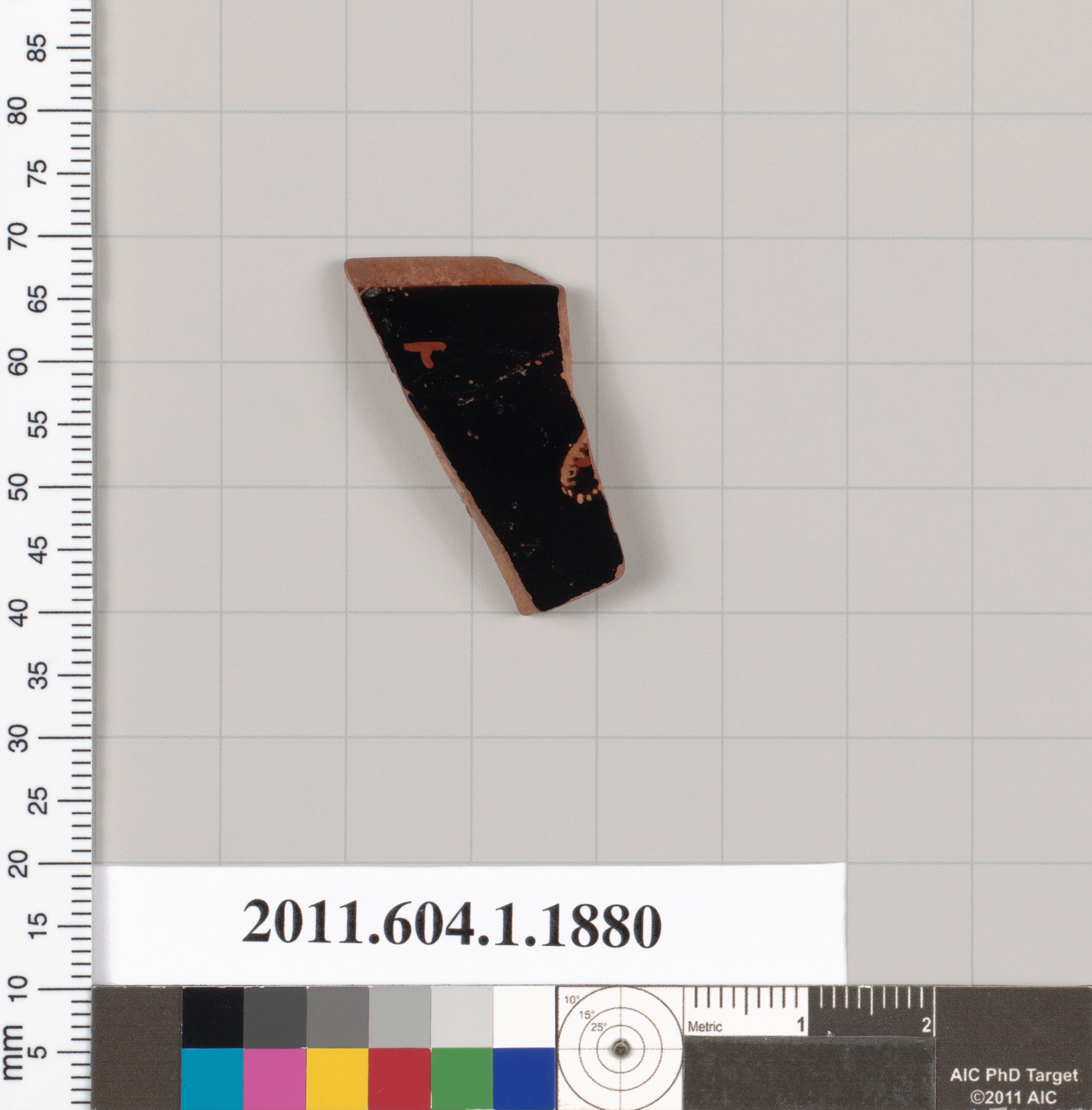 Exterior, hair and part of a fillet?; part of an inscription, a tau