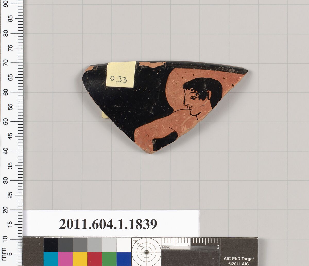 - Title: Terracotta rim fragment of a kylix (drinking cup)