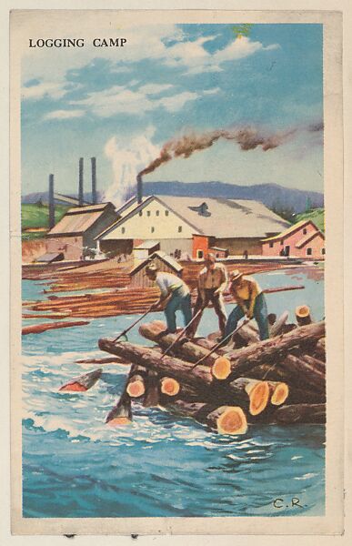 Logging Camp, bakery card from the Nature's Splendor series (D39-7), issued by the Gordon Bread Company as a set of 24 cards and distributed in loaves of Gordon's Finest Bread; also issued by Bell's Bakeries, Inc. (Album 307, page 72)