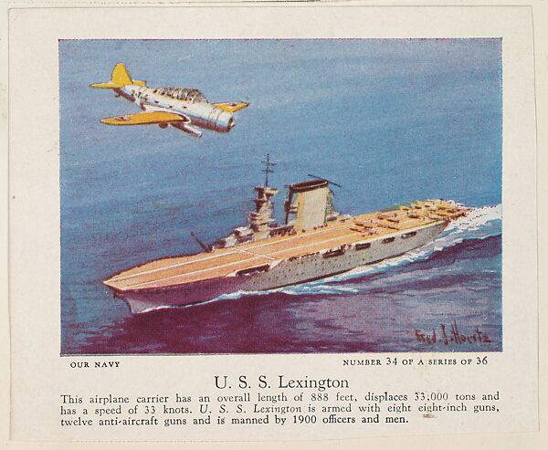 - Title:No. 34, U. S. S. Lexington, collector card from the Our Navy series (D62), issued by the Kelley Baking Company