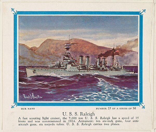 - Title:No. 25, U. S. S. Raleigh, collector card from the Our Navy series (D62), issued by the Kelley Baking Company
