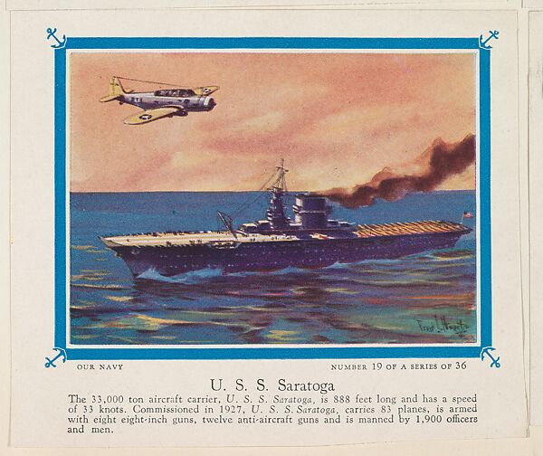 - Title: No. 19, U. S. S. Saratoga, collector card from the Our Navy series (D62), issued by the Kelley Baking Company
