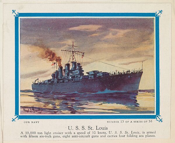 - Title: No. 13, U. S. S. St. Louis, collector card from the Our Navy series (D62), issued by the Kelley Baking Company