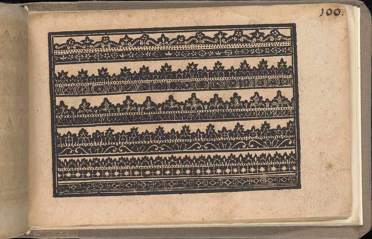 Illustrated and hand-colored title page, 94 pages of designs for lace and embroidery.