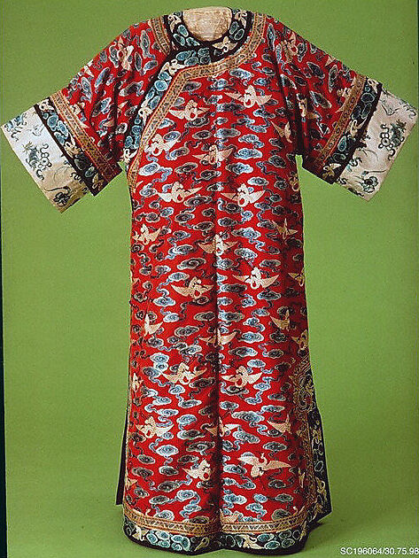 - 清晚期 紅緞繡雲鶴紋氅衣