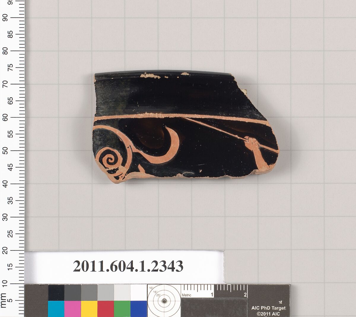 - Title: Terracotta rim fragment of a kylix (drinking cup)