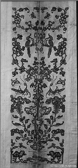 - Medium:Silk, metallic thread; on silk