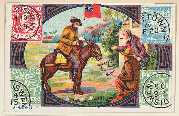 - Title: The Mail in , bakery card from the Stamps and Mail Carriers of All Nations series (D73), issued by the Rochester Baking Company