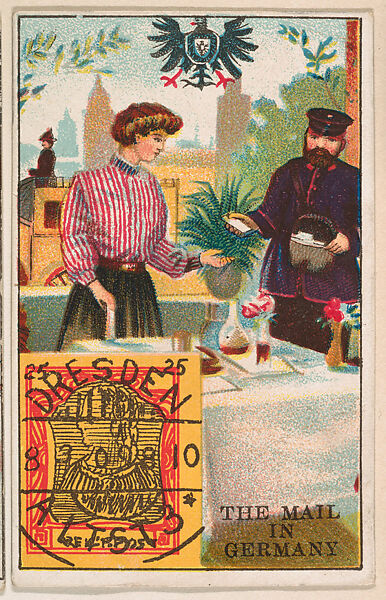 - Title:The Mail in Germany, bakery card from the Stamps and Mail Carriers of All Nations series (D73), issued by the Rochester Baking Company