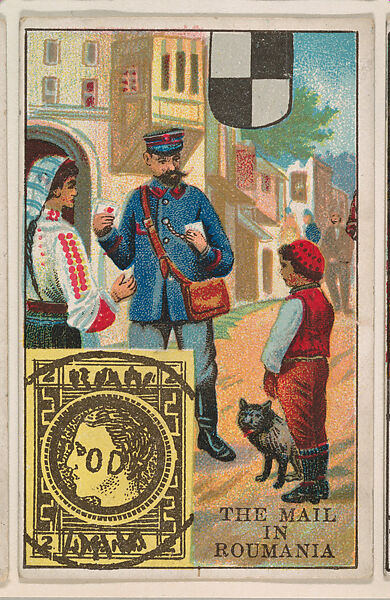 - Title:The Mail in Roumania, bakery card from the Stamps and Mail Carriers of All Nations series (D73), issued by the Rochester Baking Company